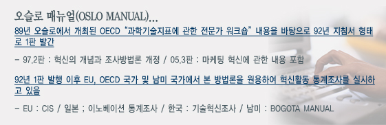 Oslo manual 1ÆÇ(¡®92)¿¡¼ ±â¼úÇõ½Å¸¸À» ±ÔÁ¤, 3ÆÇ(05)¿¡¼´Â ºñ±â¼úÇõ½ÅÀÇ