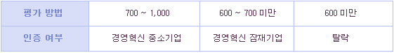 - Æò°¡°á°ú 700Á¡ ÀÌ»óÀÎ ±â¾÷À» °æ¿µÇõ½Å Áß¼Ò±â¾÷À¸·Î ¼±Á¤ÇÏ¿© ÀÎÁõ¼ ¹ß±Þ